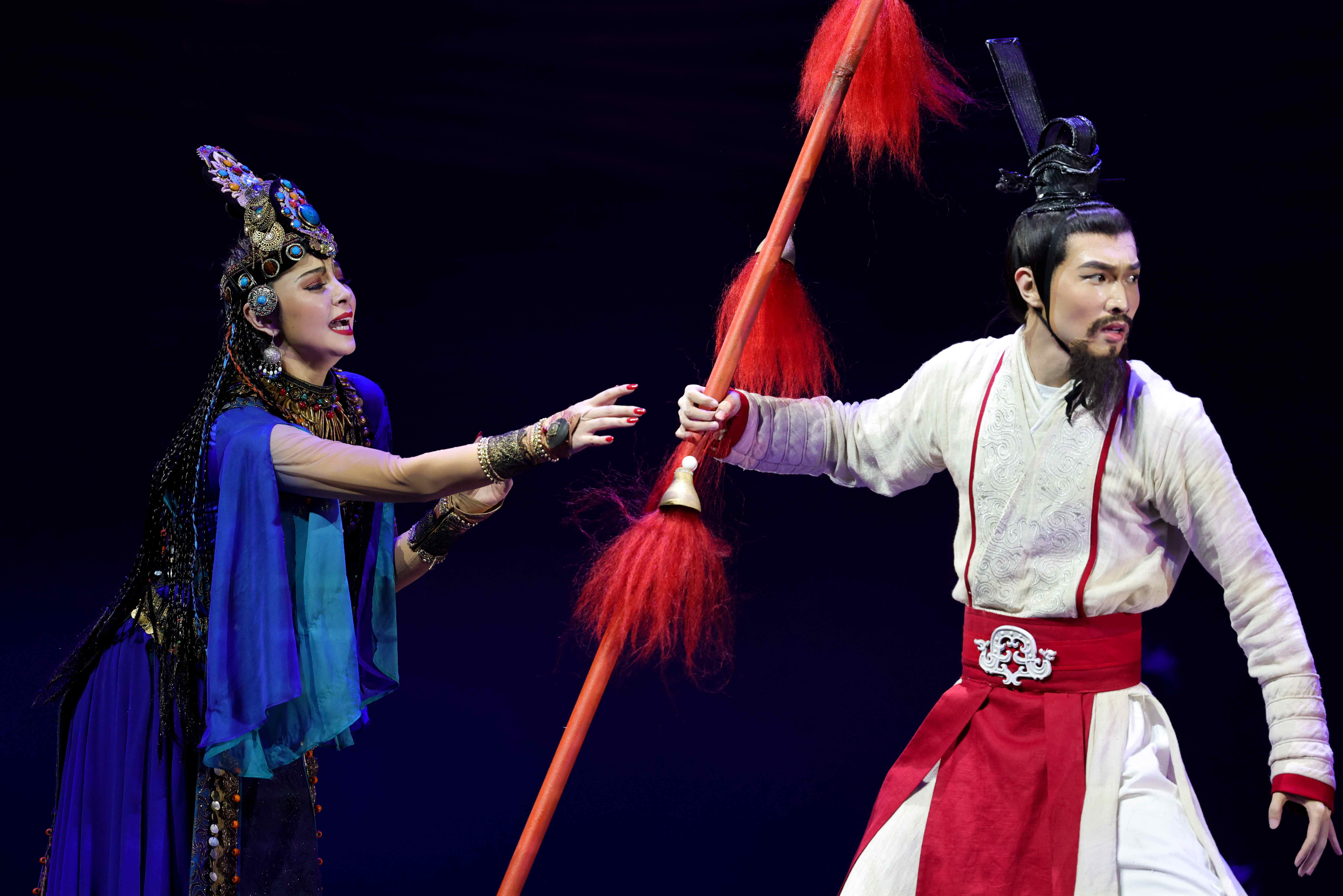 游客在西安大雁塔和玄奘法师的铜像下游览(5月1日摄)。新华社发(邹竞一 摄)