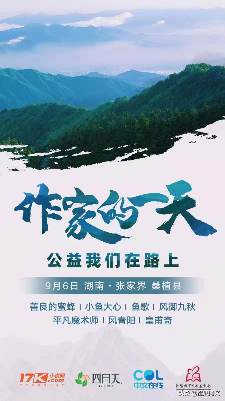 今年,我们将公益的种子分到我们的作家手里,第一次实现“创作公益力量”,让作家参与公益,助力公益。