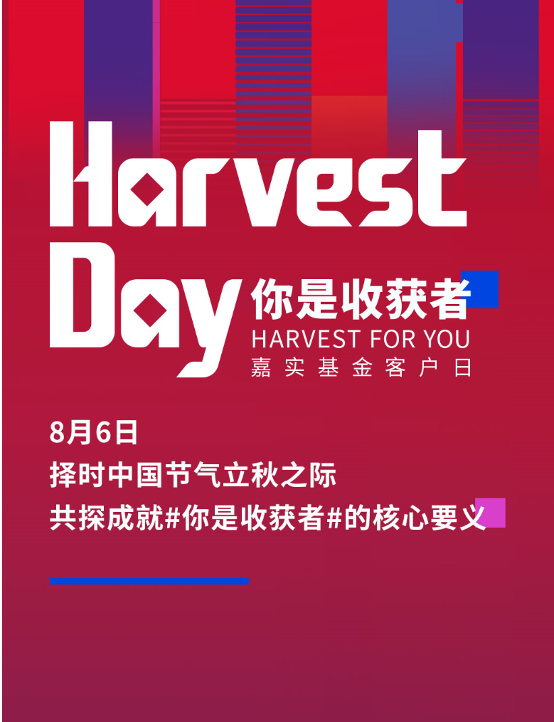 2021是嘉实基金成立第22年,也被嘉实定义为“客户年”。这一年嘉实基金围绕客户的需求与痛点,从公司基础设施建设、专业回馈客户、增强客户体验等多个方面展开了系列活动,此次以“你是收获者”为主题的嘉实基金客户日(Harvest Day)活动也是重要环节之一。