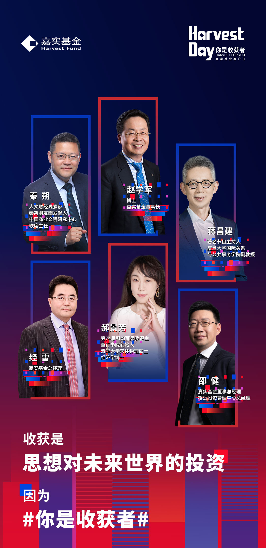 据了解,在嘉实基金客户日(Harvest Day)主论坛环节,邀请到了人文财经观察家、秦朔朋友圈发起人 、中国商业文明研究中心联席主任秦朔围绕中国商业世界的变革,探寻全球视野下经济发展新风向,剖析中国产业创新升级的本质与逻辑,分享优秀企业的商业文化与价值观;第74届科幻雨果奖得主、童行书院创始人郝景芳将与大家共同探讨,关于50年后人类全景生活的畅想和思考。
