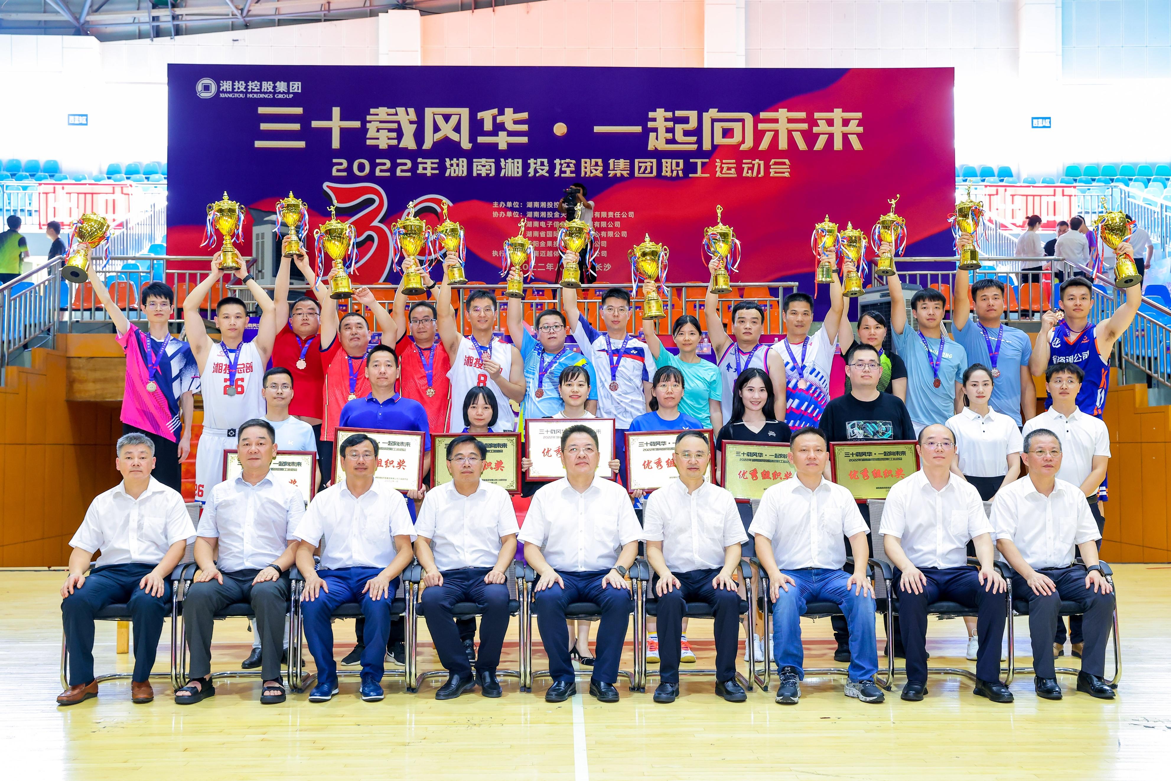 在本次运动会上,金天集团代表队获得“齐心向未来”项目冠军,湘投总部、金宜物业代表队分获亚军、季军;“协力创新高”比赛中,省管网公司、清电公司、湘投总部二队分获冠、亚、季军;“咨询杯”篮球比赛,省咨询公司荣获冠军,金天集团、湘投集团总部代表队分获亚、季军;“金果杯”羽毛球比赛,金果投资代表队拔得头筹,金天集团和湘投总部代表队分获亚军、季军;“信产杯”气排球比赛,金果投资代表队摘得桂冠,亚军、季军分别是蟒电公司、和电公司代表队。