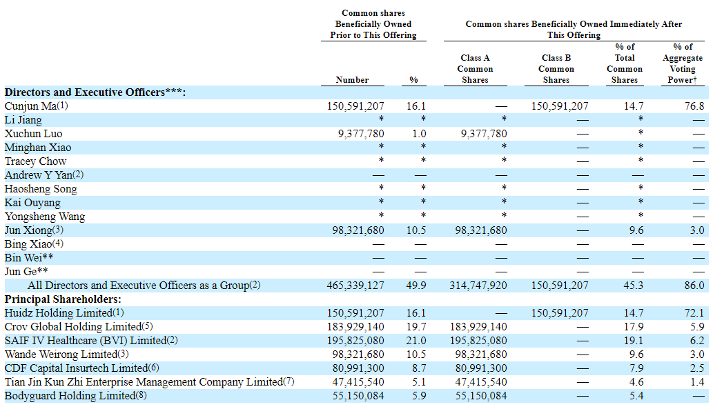 招股书显示,IPO前,慧择保险创始人兼CEO马存军通过Huidz Holding Limited直接持有公司16.1%的股份、A股上市公司焦点科技通过CrovGlobal Holding Limited持有19.7%的股份、公司董事Andrew Y Yan控制的SAIF IV Healthcare (BVI) Limited持有慧择保险21%股份、公司董事Mr.Jun Xiong控制的Wande Weirong Limited持有慧择保险10.5%股份,而持有公司5.9%股份的BodyguardHolding Limited则为慧择保险的员工激励平台。