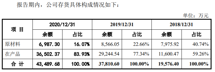 泽宇智能对此表示,公司实行“以销定采”的采购政策,期末存货余额的增加与当期末在手合同的增加有关,报告期各期公司签订的订单总额逐年增长,其中 2019年度公司在手订单金额较以往年度相比大幅增加,导致2019年度存货余额大幅增长。