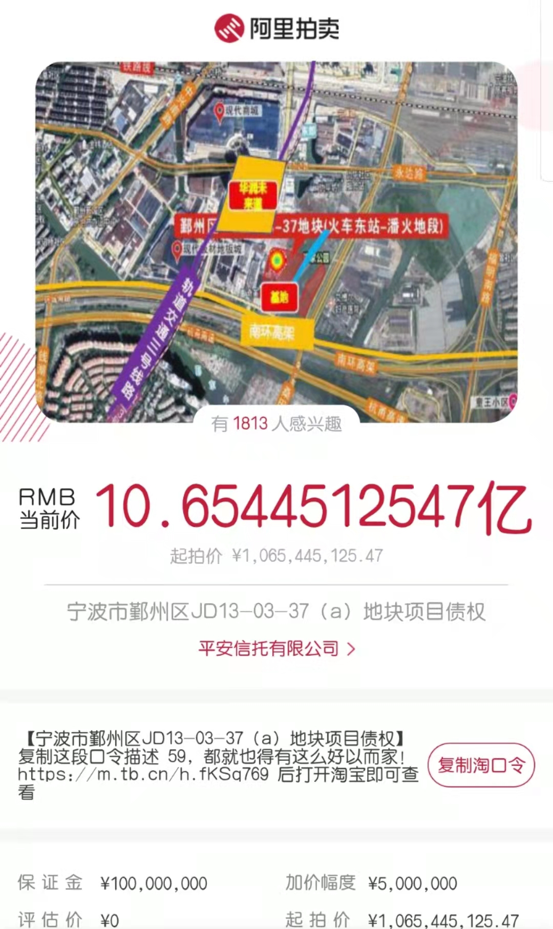 值得一提的是,此次拍卖债权的抵押地块是宁波鸣翠东著楼盘,