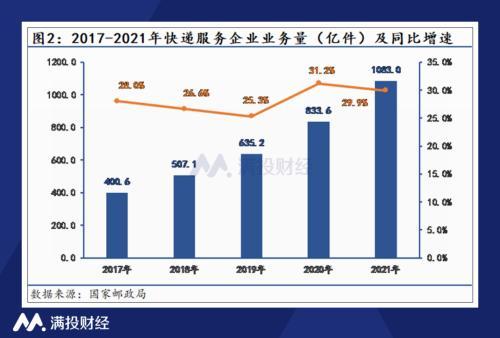 在中国,受益于庞大的人口基数和不断提高的互联网渗透率,快递服务的市场需求尽管在疫情影响下略有波动,但整体来看仍保持增长。据国家邮政局数据,快递服务企业业务量已由2017年的400.6亿件增长至2021年的1083亿件,2017-2021年的复合增长率高达170.3%,而截至8月31日,2022年全国快递业务量也累计完成703亿件,同比增长4.4%,快递市场发展依然迅猛。