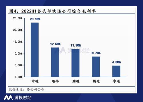 对于中通快递来说,良好的成本管控能力是其在行业中占据最大市场份额的关键。公开资料显示,基于此前巨额的资本开支,中通快递无论是在分拣还是运输环节都具备成本优势,采用的自动化分拣设备显著提升了运行效率,而运输车型的升级和线路的拉直也明显提高了装载率,数字化改造则强化了公司精细化管理能力。从具体数据来看,2022年上半年中通的综合毛利率为23.1%,远高于其余头部公司。