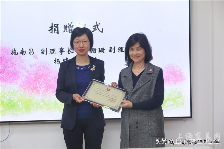 上海市慈善基金会副理事长施南昌代表市会接受捐赠