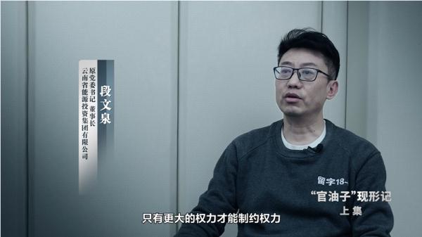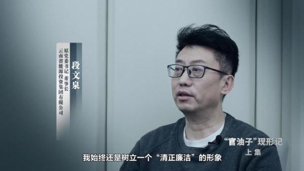 2月20日晚,云南省纪委监委宣传部、云南广播电视台联合摄制的警示教育专题片《“官油子”现形记》(上集)播出。片中披露了“芳香型”的“官油子”——云南省能源投资集团有限公司原党委书记、董事长段文泉的案情。