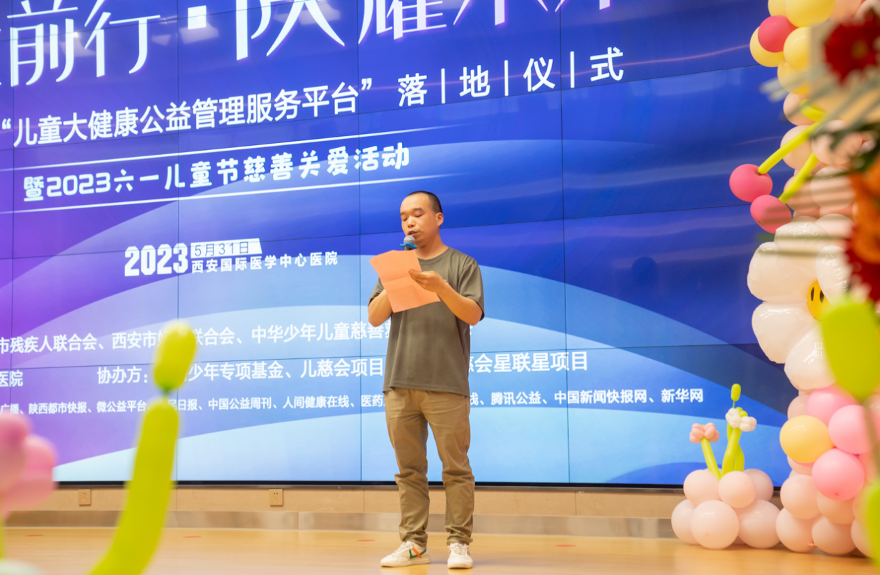 “今天,在六一儿童节前夕这个美好的上午,我们欢聚一堂,共同见证‘医’童前行,‘陕’耀未来——中华儿慈会‘儿童大健康公益管理服务中心’落地仪式。在此,我谨代表国际医学中心医院对莅临现场参加活动的各位领导和嘉宾,以及关心儿童慈善事业的各位爱心人士表示衷心的感谢和热烈的欢迎!