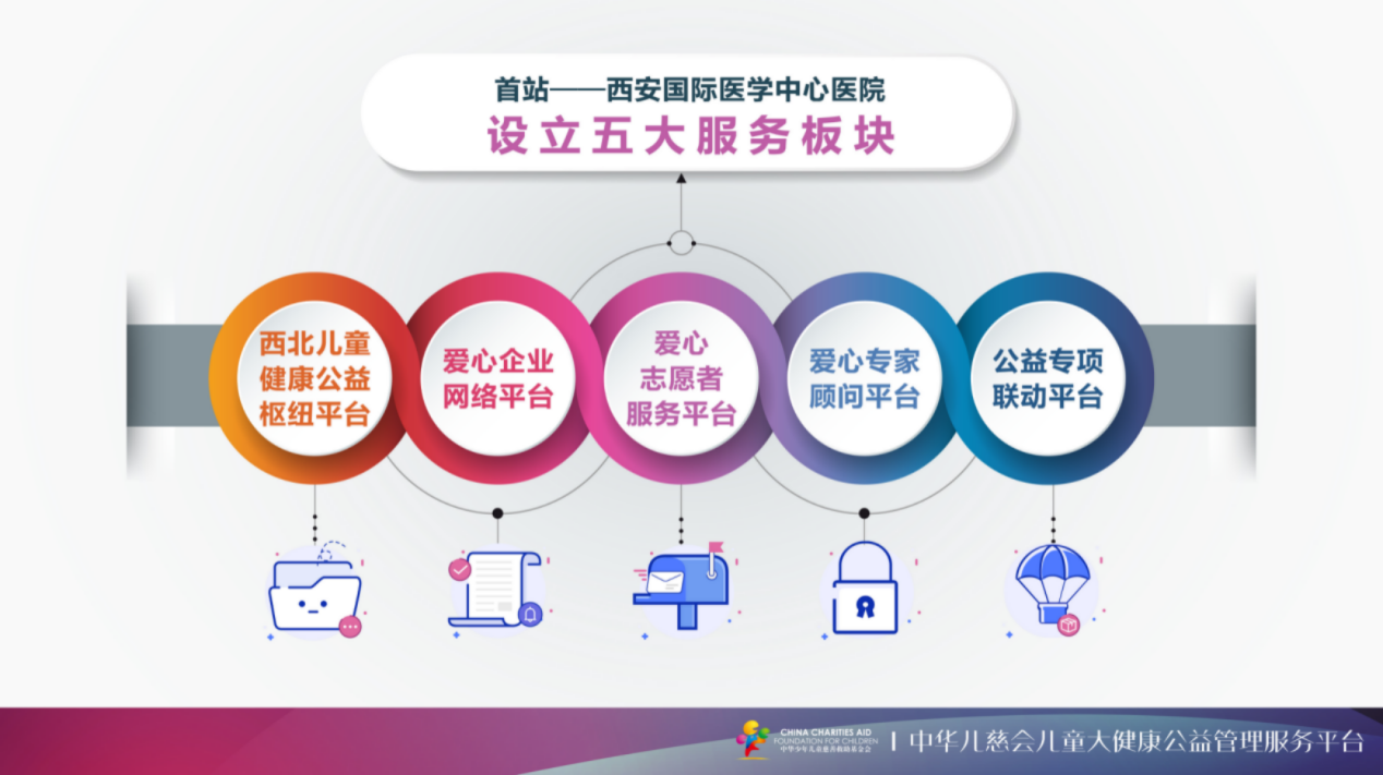 第一为“西北儿童健康公益枢纽平台”:集中辐射西北五省的困境少年儿童的健康需求服务,作为儿童大健康医疗渠道的桥梁,联动西北慈善组织力量帮扶困境儿童群体;