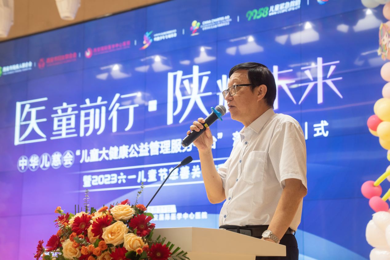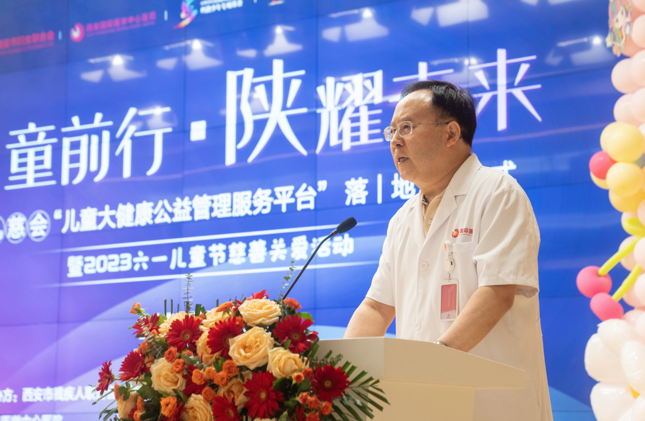实际上,今天这是我第三次来到这个医院,每一次来都有不同的感受。当2019年来到医学中心的时候,我感觉到今后我们陕西地区的病人有了一个高标准高规格的就医选择,这对于西北地区的困境患儿也是一个很好的福音;此次促成‘儿童大健康公益管理服务中心’的成立,我感到非常开心,中华儿慈会作为一个公益组织,我们有责任也有信心,给大病儿童带去更多的关怀和帮助;儿童是祖国的花朵,未来,我们也希望更多的爱心机构、爱心企业、爱心人士加入到公益的行列中来,将善传递,将爱传递。”