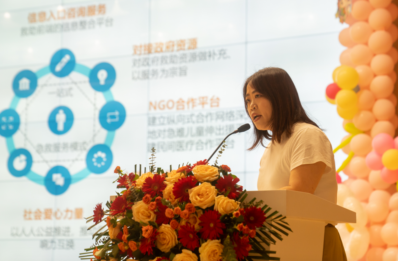 “今天,我们相聚在中华儿慈会‘儿童大健康公益管理服务中心’的启动仪式,在此我代表中华儿慈会对莅临此次活动的朋友们表示最衷心的感谢和敬意。同时,在六一儿童节即将到来之际,向医院所有的小朋友表示祝福。