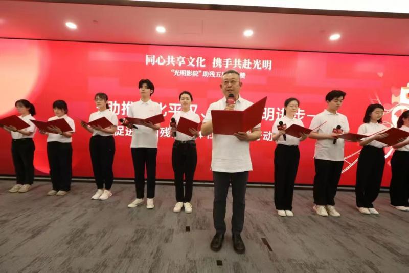 为加强对残疾人群体平等参与文化生活的切实关怀,共同助力我国社会文明进步,“光明影院”青年志愿者使团在全国助残日到来之际发起全国“光明行动”倡议,希望以推动无障碍设施和服务优化升级的方式,帮助视障人士更好地共享精神文明建设成果,将“文化盲道”铺向更广更远的地方。