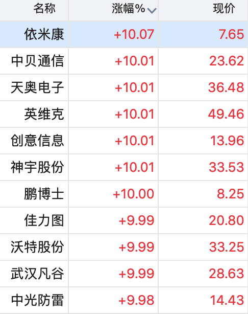3月3日开盘,受利好消息影响,5G、广电系概念股涨幅居前。截至发稿,5G板块内依米康、中贝通信、佳力图、沃特股份、武汉凡谷等10余股涨停。广电系个股中,吉视传媒涨停、江苏有线高开6.15%、歌华有线高开5.47%、贵广网络高开2.16%。