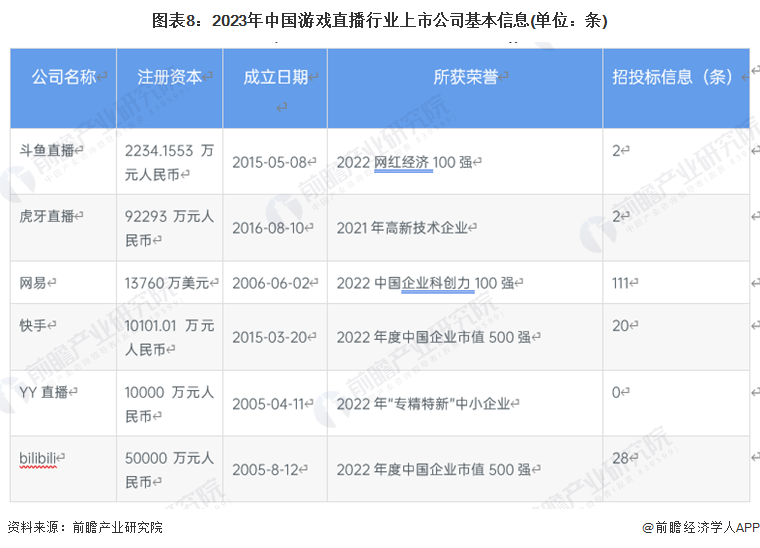 ——原标题:【全网最全】2023年中国游戏直播行业上市公司全方位对比(附业务布局汇总、业绩对比、业务规划等)