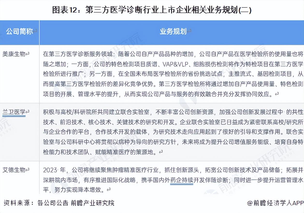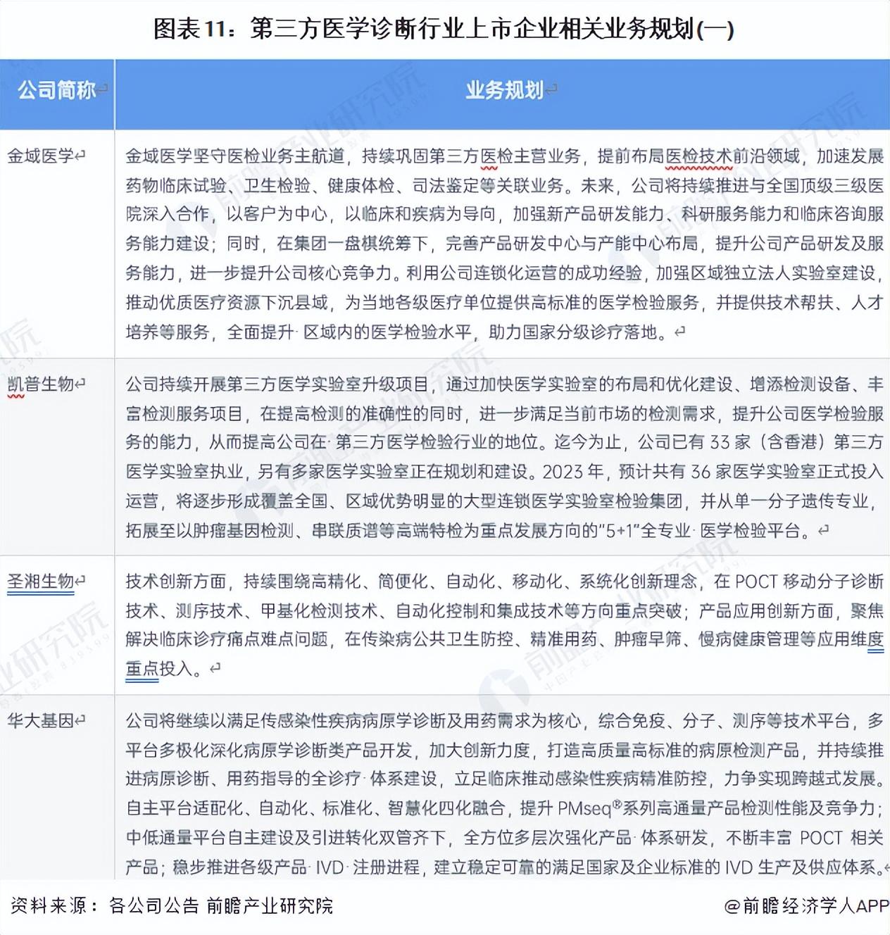 第三方医学诊断上市企业汇总;第三方医学诊断行业上市企业业务占比;第三方医学诊断上市企业发展规划