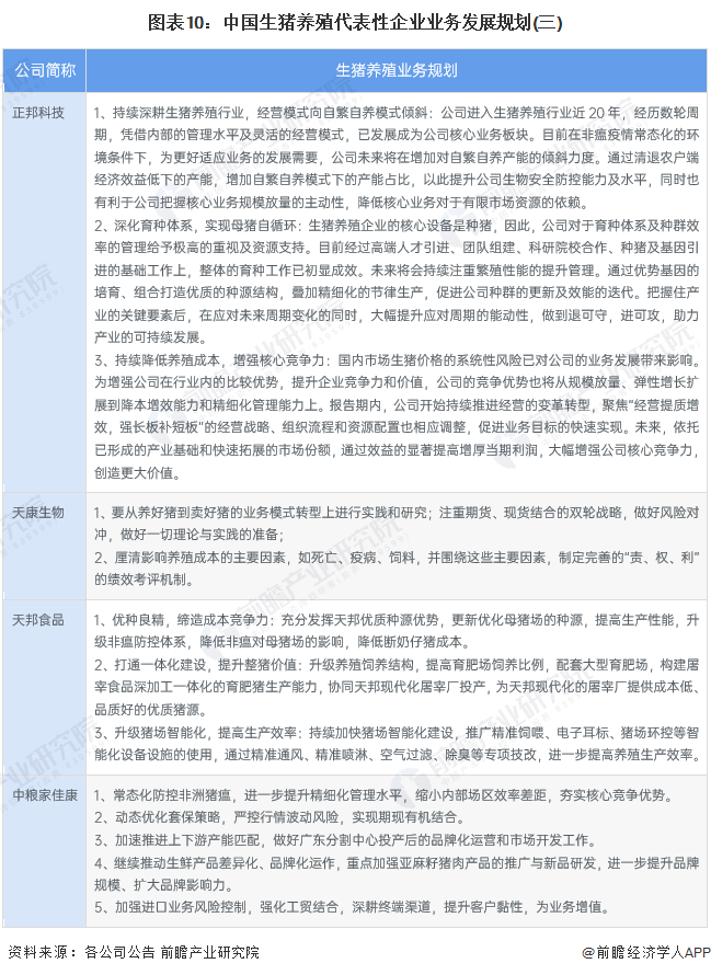 生猪养殖行业上市公司生猪养殖业务规划对比