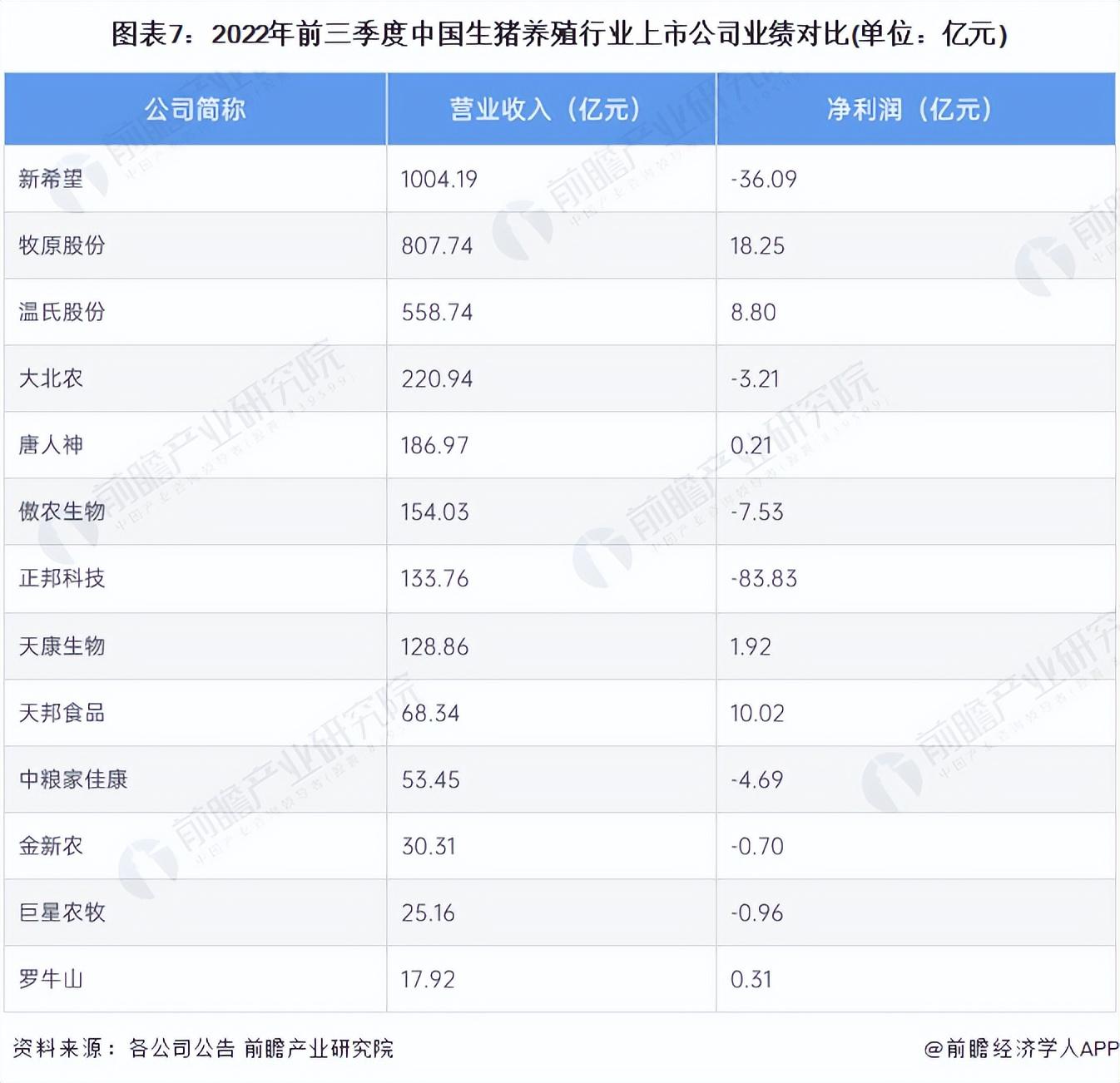 从净利润来看,2022年前三季度,牧原股份、天邦食品、温氏股份位于行业前三名,净利润分别为18.25亿元、10.02亿元和8.8亿元。