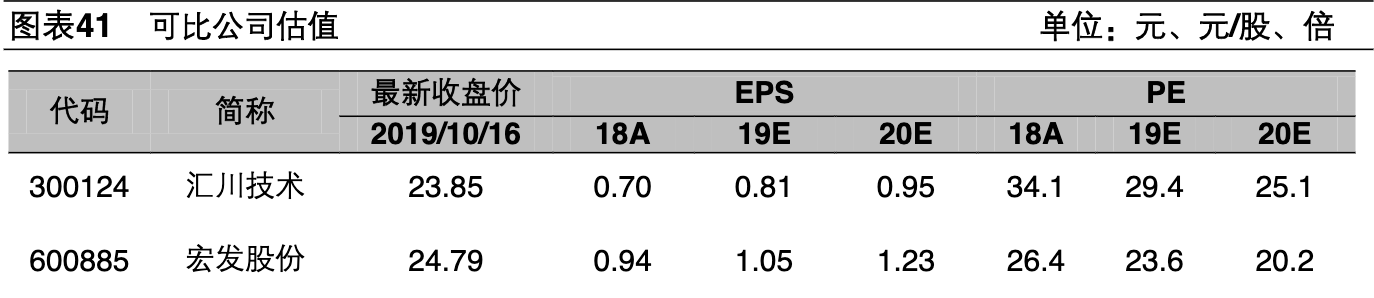 目前公司正在大力拓展新能源汽车驱动电机业务,并且已率先成为采埃孚驱动电机的供应商,我们认为伴随公司EV电机业务的快速发展,公司估值存在切换的可能性。参考从工业自动化向新能源汽车电控拓展的汇川技术和正在大力发展高压直流继电器业务的继电器龙头宏发股份,公司合理PE有望进一步上升至25-30倍左右。