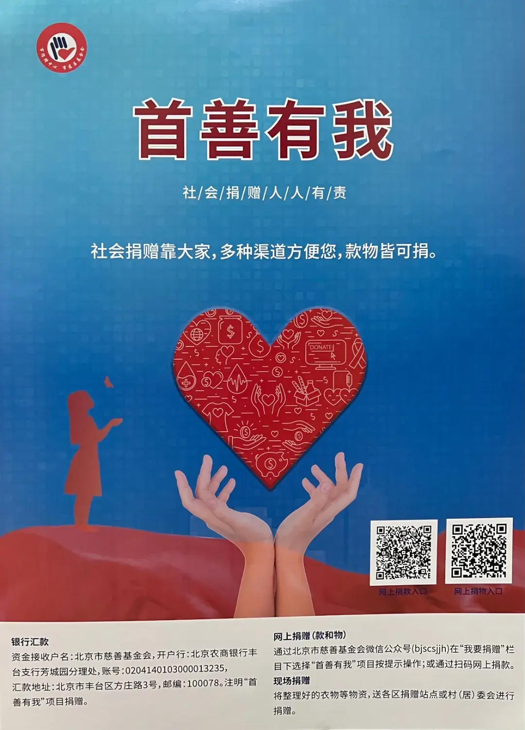 2.汇款后,请务必通过关注“北京市慈善基金会”微信公众号--左下角“我要捐赠”--选择“首善有我”--捐赠信息登记及发票信息索取,填写相关内容获取捐赠票据。