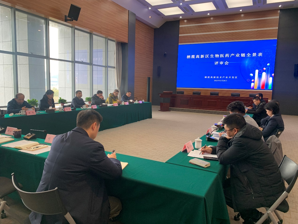2月28日,栖霞高新区举办生物医药产业链全景表专家评审会。市科技局高新区管理处四级调研员高健、市科技局生物医药办四级调