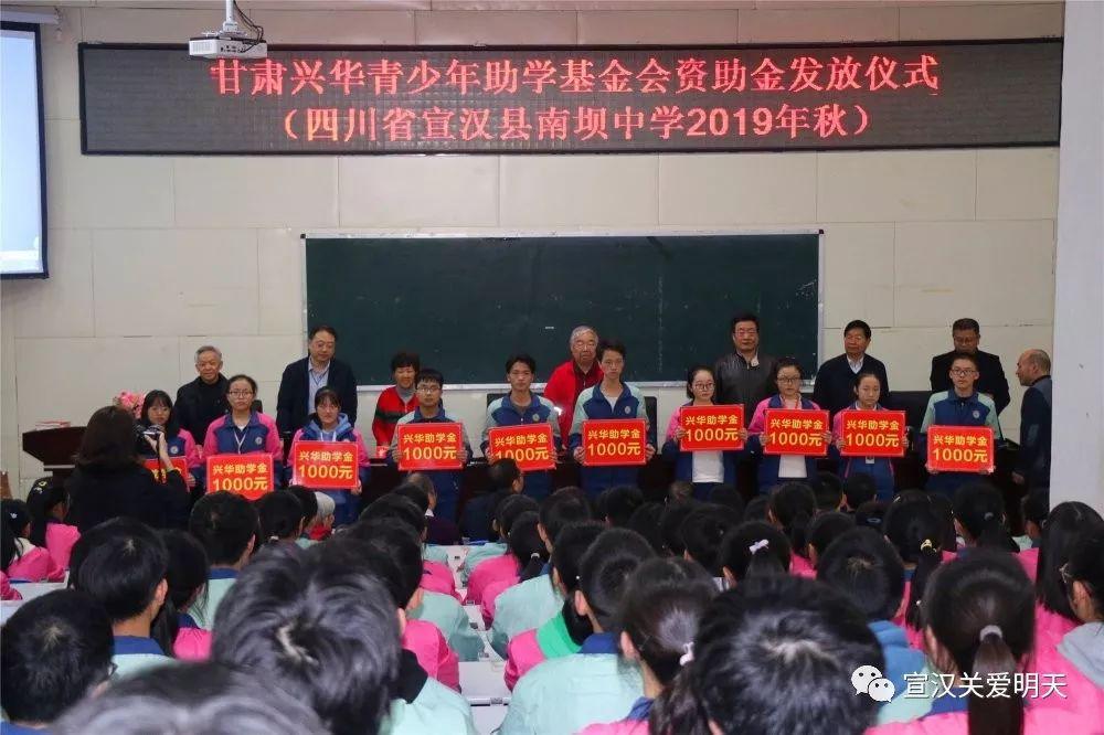 11月5日,经过县关工委的努力争取,甘肃兴华青少年助学基金会到宣汉县首期资助金发放仪式在南坝中学举行。
