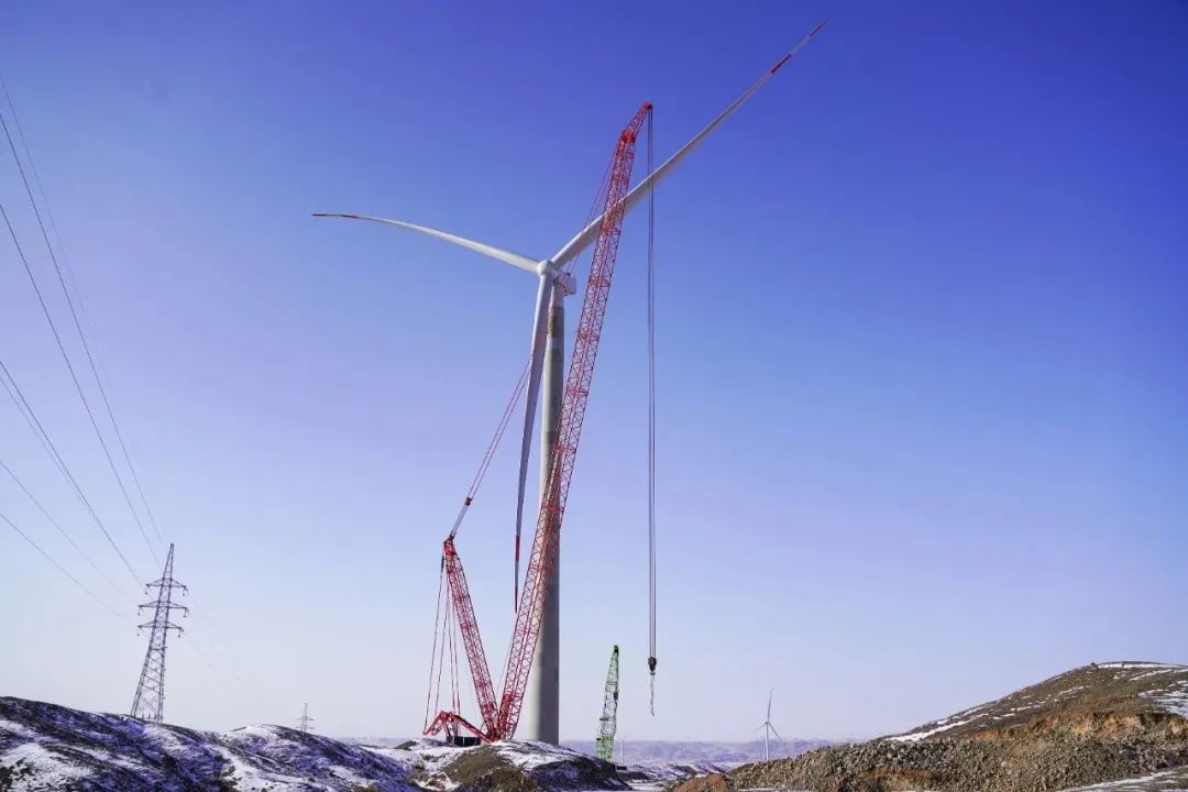 “项目于2022年3月开工建设,9月开始风机吊装,目前64台风机已全部吊装完毕。下阶段我公司将进行风机调试和并网手续办理,尽快完成风电项目并网发电。”