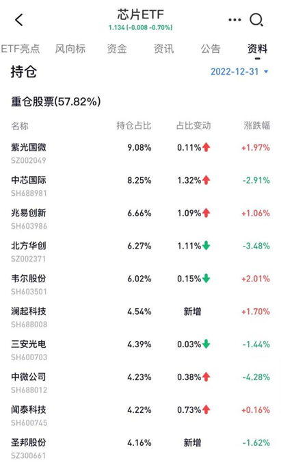 所以我觉得芯片ETF(159995)值得关注,因为芯片板块目前整体处于历史低位,这次也没怎么涨,未来上涨空间特别大。该指数前十大重仓股,涵盖了许多国内芯片产业链龙头企业,比如:紫光国微、中芯国际、兆易创新、北方华创、韦尔股份、澜起科技、三安光电、中微公司、闻泰科技、圣邦股份等,覆盖了芯片设计、芯片制造、芯片封装测试等业务,因此,如果看好国内芯片未来的发展和投资未来几个月的指数增长,可冲!该指数很适合趋势型的投资者!